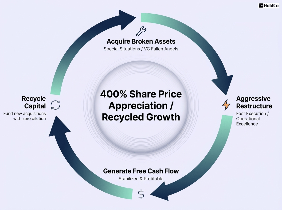 The result: 25-plus businesses and 400% share price appreciation in the first 24 months.